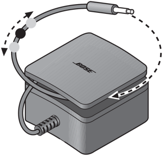 - Enroulez le câble autour de la partie supérieure du bloc d’alimentation, en suivant la cannelure.