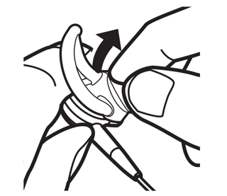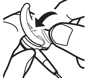 Positionnez l’ouverture du nouvel embout sur la canule et la petite fente au-dessus de la crosse de celle-ci.
