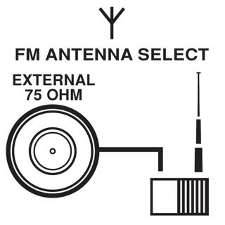 The system has an FM ANTENNA SELECT switch located on the back of the unit.