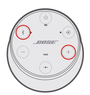 Relâchez ces touches dès que vous entendez le message « Press the Bluetooth and volume down buttons simultaneously on a second Bose device » (appuyez simultanément sur le bouton Bluetooth et sur la touche de réduction du volume sur le second appareil Bose).
